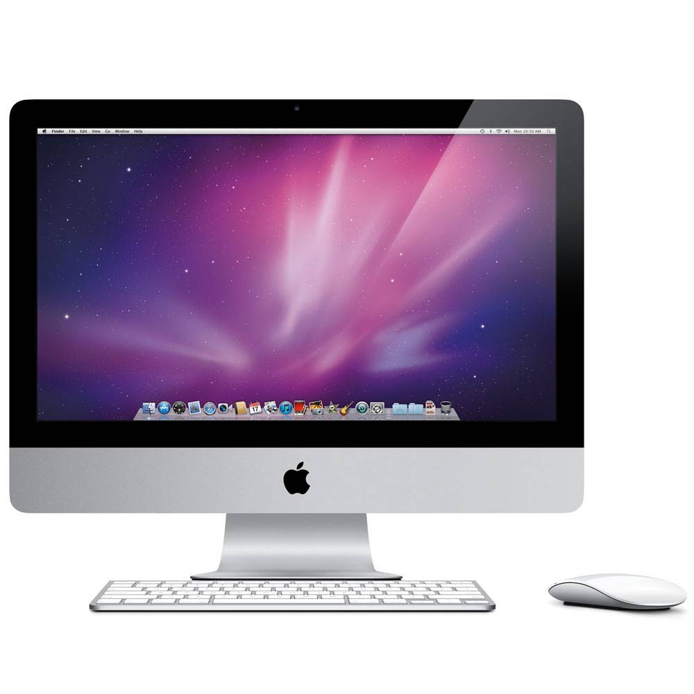 O iMac de 21,5 polegadas vem com resolução de 1920 por 1080. Além de contraste de 1000:1, para cores mais vibrantes e pretos bem escuros. Tudo com uma taxa de aspecto de 16:9, igual a de uma TV de alta definição.